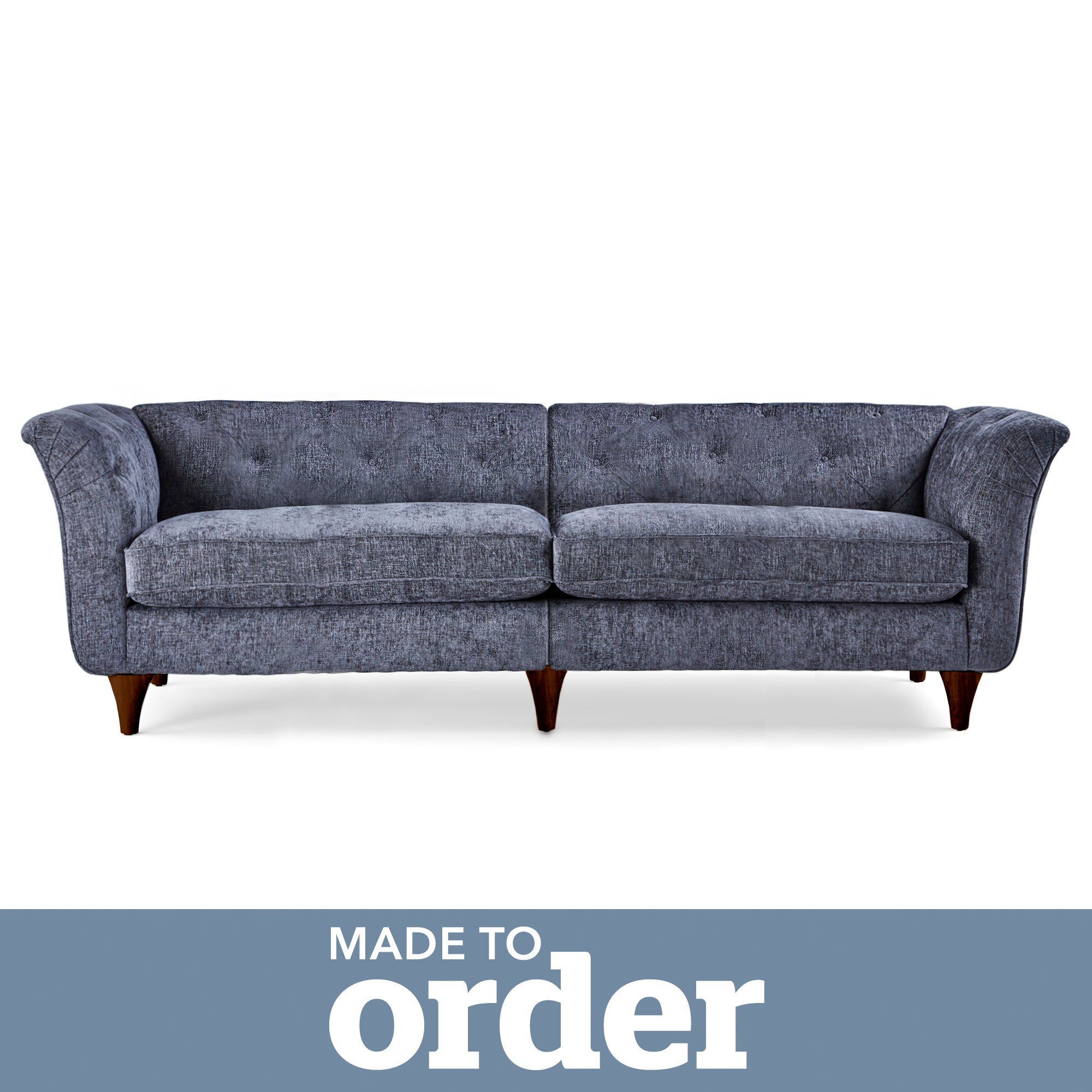 Combining premium comfort and elegant design, the Jaipur Large Sofa would make a superb addition to any living space. This range incorporates a stylish buttoned detail on the backrest and arms, coupled with curved, pleated arms and tapered wooden legs to create a stunning silhouette. The seat cushions feature a soft reflex foam filling with an Ultrasilk Dacron fibre wrap, perfect for providing a comfortable and supportive sit, whilst maintaining their shape and fullness. The fixed backrest and arms also feature a foam filling, ensuring this large family sofa is as comfortable as it is stylish.The Jaipur is upholstered in an irresistibly soft premium chenille fabric, available in a choice of gorgeous colours. You can also pick between light and dark wood finished legs so you’re sure to find something to suit your style.Our made to order Sofas are crafted with sturdy hardwood frames to ensure that they’ll be able to easily handle the toil and strain of everyday life for years to come, but in case the worst should happen, we offer a 10 year upholstery frame guarantee on all our made to order sofas and chairs. [Click here to find out more.](https://www.dunelm.com/info/help/terms-and-conditions#upholstery-frame-guarantee)[Click here](https://www.dunelm.com/infodocs/downloads/Furniture-Sizing-Guide.pdf) to check out our handy sizing guide to help you find out if you’ll be able to get your new furniture into your home.