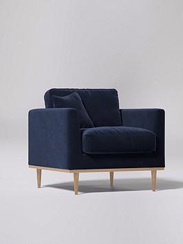 Swoon Norfolk Fabric Armchair in a choice of 10 colours H 90 x W 83 x D 85 cm Space-save like never before! Norfolk provides a haven of relaxation with lightly rounded cloud-like cushions and a single accent cushion, all enclosed within the neat confines of its eye-catchingly angled arms. Solid wood tapered legs complete the look. Perfect palette Available in a wide array of colours, from subtle silver grey to bold blush, Norfolk’s easy velvet flaunts a delectable pile that won’t crease or mark like traditional velvets. About Swoon This design-led furniture brand exists for the home obsessed, allowing you to get beautiful designs at fair prices. Using the world as inspiration, Swoon’s in-house design team create original pieces that let you turn your space into a relaxing sanctuary. Platinum Delivery Service After taking your new furniture to your room of choice, a dedicated 2-person team will unpack, assemble and position it in your preferred place, then remove all the packaging. Please note: this service excludes all Offshore Islands and Ireland. Please remember to measure your available space before ordering. Dimensions: Height 90, Width 83, Depth 85 cm Dimensions: H 90, W 83, D 85 cm Materials: pine frame, birch legs Weight: 21 kg Comfort level: medium-soft Filling: foam and polyfibre in seats, loose polyfibre in back and scatter cushions Removable covers: yes Packaged dimensions: 90 x 92 x 79 cm Please note: due to its hand-crafted nature, there may be natural variations in colour and texture. Velvet is very sensitive to liquids and should be kept dry – professional dry-clean only. Avoid keeping in direct sunlight to prevent colour fading. Depth: 850 MM Height: 900 MM Material Content: Frame – Birch, Beech and Ply | Feet – Beech | Suspension – Stretch Webbing and Polyweb Seat Cushion Filling: Foam And Fibre Filled Seat Cushion Width: 830 MM Back Type: Removable Standard Back Cushion Filling: Fibre Filled Back Cushion Number of Seats: 1 Seat Construction: Removable Seat Cushion Seat Height (in cm): 48