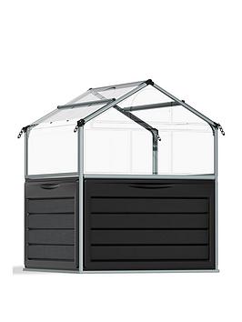 Canopia by Palram Plant Inn Silver- Clear Glazing Depth: 118 CM Height: 148 CM Width: 118 CM Virtually unbreakable Polycarbonate panels: protects from frost / hail / snow and blocks harmful UV rays Raised garden bed: protects from pests, improves light exposure Hinged lid offers 5 positions: closed, open for cultivation and irrigation, and half open for ventilation (3 options) Durable, rust resistant Aluminum frame Built-in storage compartment for your gardening equipment and tools