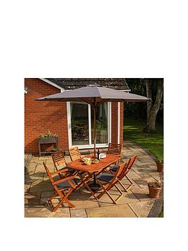 Rowlinson Plumley Outdoor Dining Set With Cushions, Parasol And 15Kg Base (Grey)