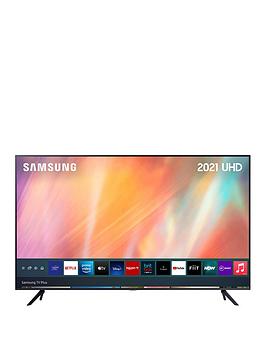 Samsung 2021 50 inch AU7100 UHD 4K HDR Smart TV Get the Samsung A430 soundbar (see item RNEGW) for £139 when bought with this TV between 15.03.22 – 05.04.22. Add TV and soundbar to your basket, and discount will be applied at checkout. While stocks last. Experience all your must-seen entertainment in striking Ultra HD picture quality with our AU7100 4K smart TV. Ramp up the surround sound with the combined power of your Samsung TV and soundbar. Mirror your phone to the TV with a single tap.* Discover an abundance of apps and services to simply enjoy, only on Samsung Smart TV. *Internet connection and compatible smartphone required. Crystal Processor 4K Simply relax and enjoy all the content you love, with a 4K upscaling TV that adapts to give you the best 4K Ultra HD picture. But it doesn’t stop there. The sound adjusts to perfectly suit what you’re watching. HDR powered by HDR10+ See the stunning detail in every scene, just as the creators intended. Smart TV powered by Tizen Discover an abundance of apps and services to simply enjoy, only on Samsung Smart TV. Adaptive Sound Get the perfect audio experience for whatever you’re watching with Adaptive Sound. From the latest boxset to the beautiful game, your Samsung TV adjusts the sound in every scene to what’s on screen, so you’ll hear every last detail. Boundless Screen A near bezel-less TV designed to leave you with only the beautiful picture to enjoy. Plus, it’s easy to hide TV wires from sight and keep them tidy with the easy clean cable management solution, for a distraction-free viewing experience. Motion Xcelerator Stay one step ahead of the competition with a clear picture that adapts as fast as you game. Depth: 250.2 MM Height: 719.1 MM Width: 1116.8 MM On Mode Power Consumption: 87 Resolution: UHD Screen Size: 50" Tap View – Mirror your phone to the TV with a single tap. Samsung Q-Symphony LITE – Ramp up the surround sound with the combined power of your Samsung TV and soundbar. PurColour – Lose yourself in crystal clear colour every time you watch. Contrast Enhancer – Enjoy striking images with enhanced depth and colour contrast ratio. One Remote Control – Control all your devices with one sleek universal remote. PC on TV – Working from home is a breeze on the big screen. Auto Game Mode (ALLM) – Give yourself an edge on the competition with a TV that adapts as fast as you game. Works with – Your TV works with Bixby, Alexa, Google Assistant and all your compatible home appliances and smart devices.* *Requires SmartThings app, Internet connection, and SmartThings-enabled devices. Samsung TV Plus – Instant access to loads of extra free TV channels, straight out of the box* *Requires Internet connection Samsung 2021 50″ AU7100 UHD 4K HDR Smart TV